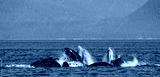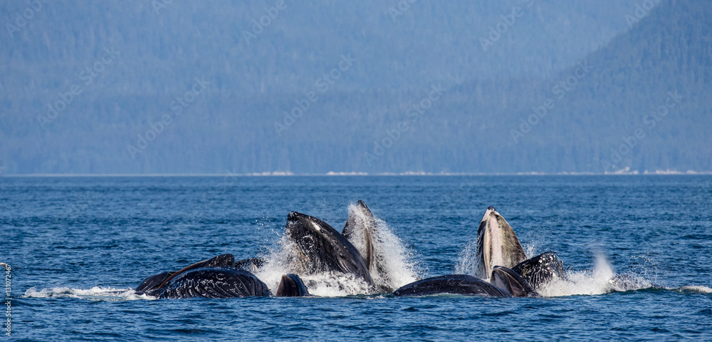 Humpback whales bubble net feeding. Chatham Strait area. Alaska. USA. An excellent illustration.