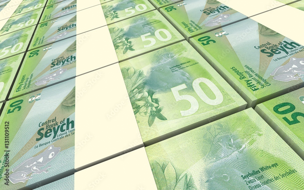 Seychelles rupee bills stacks background. 3D illustration.