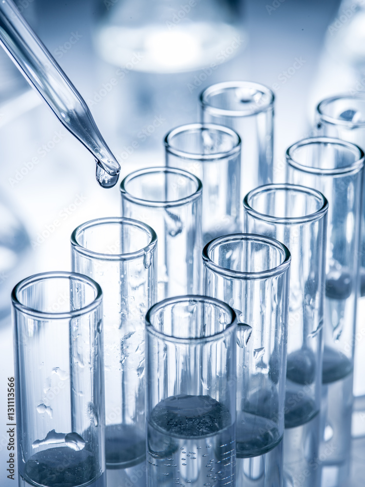 Different laboratory beakers and glassware.