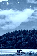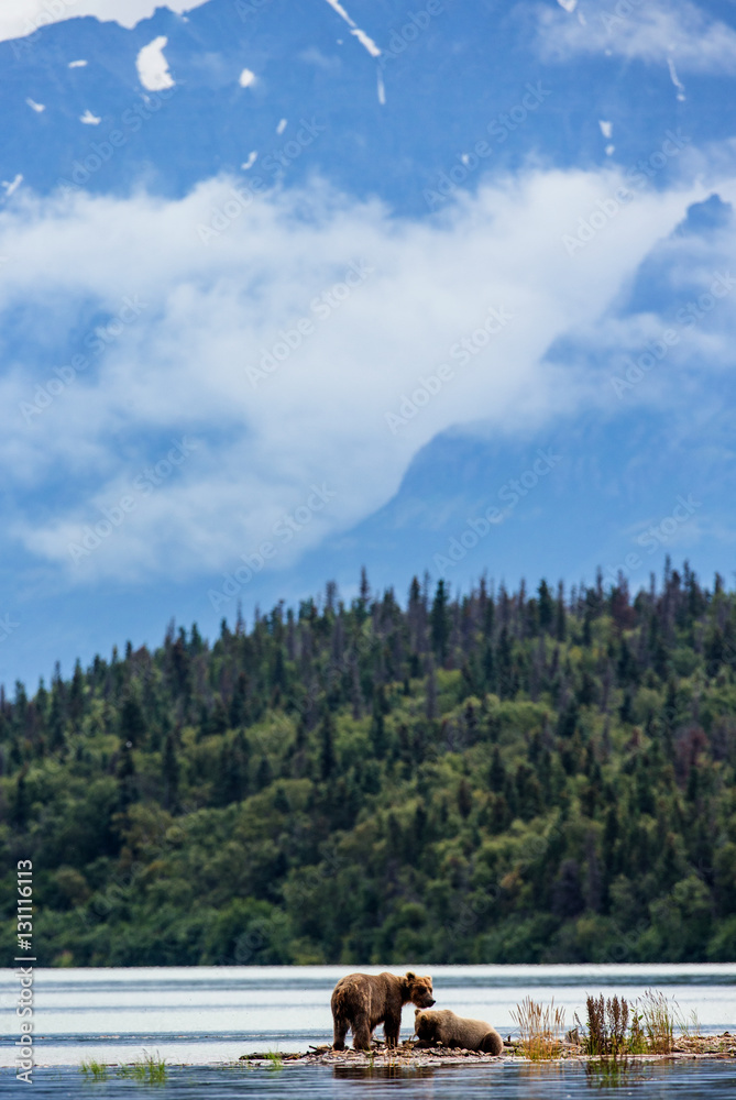 Two brown bears of Alaska against the backdrop of stunning scenery. USA. Alaska. Katmai National Park. An excellent illustration.