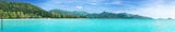 Beautiful tropical Thailand island panoramic with beach, white sea and coconut palms for holiday vacation background concept