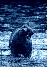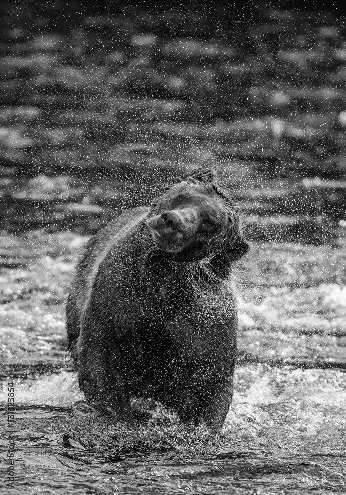 Brown bear shakes off water surrounded by splashes. USA. Alaska. Katmai National Park. An excellent illustration.