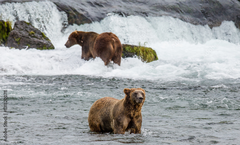 Brown bear standing in the river. USA. Alaska. Katmai National Park. An excellent illustration.