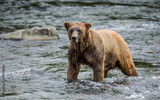 Brown bear standing in the river. USA. Alaska. Katmai National Park. An excellent illustration.