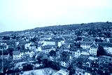 View of Bingen am Rhein and the surrounding landscape. Settlement in Rhineland-Palatinate