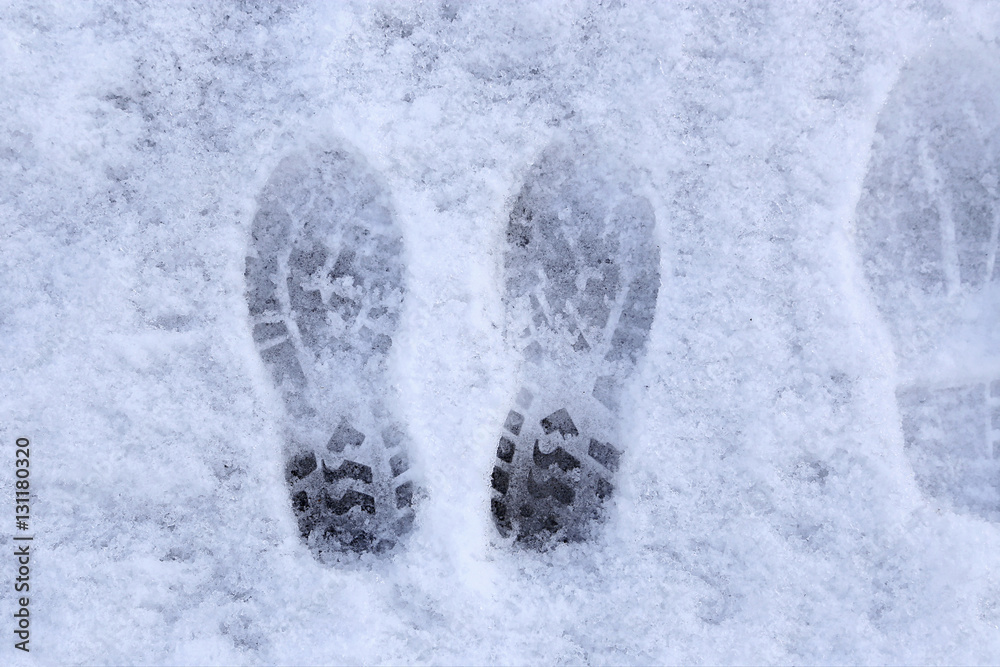 Marks of shoes in the snow