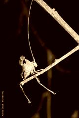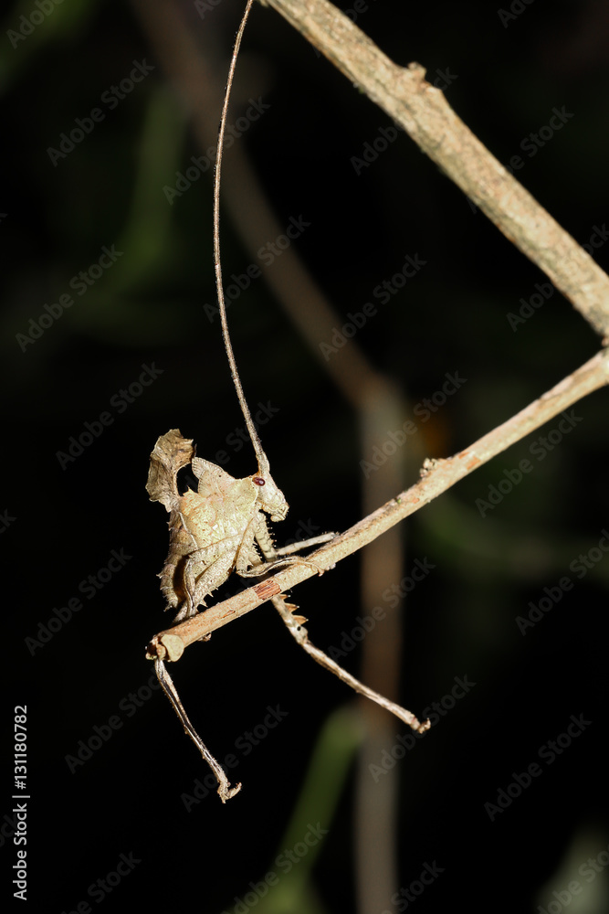 Lebendes Blatt sitzt auf einem Zweig im Regenwald