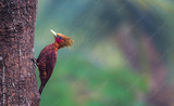 Kastanienspecht an einem Baumstamm auf Futtersuche
