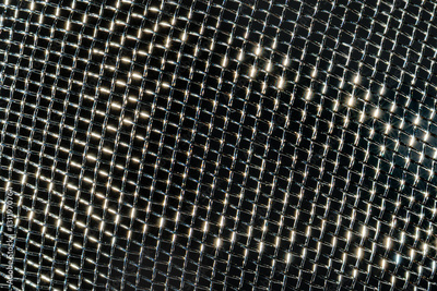 Monochrome texture of a shiny metal colander or grate. Abstract background.