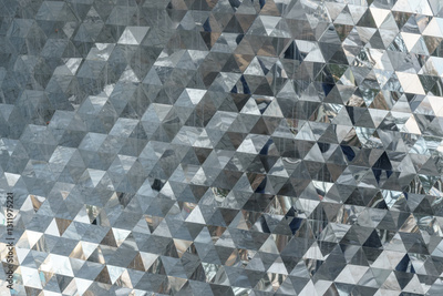 Close-up of gray metal roof panels with light reflections. Abstract background.