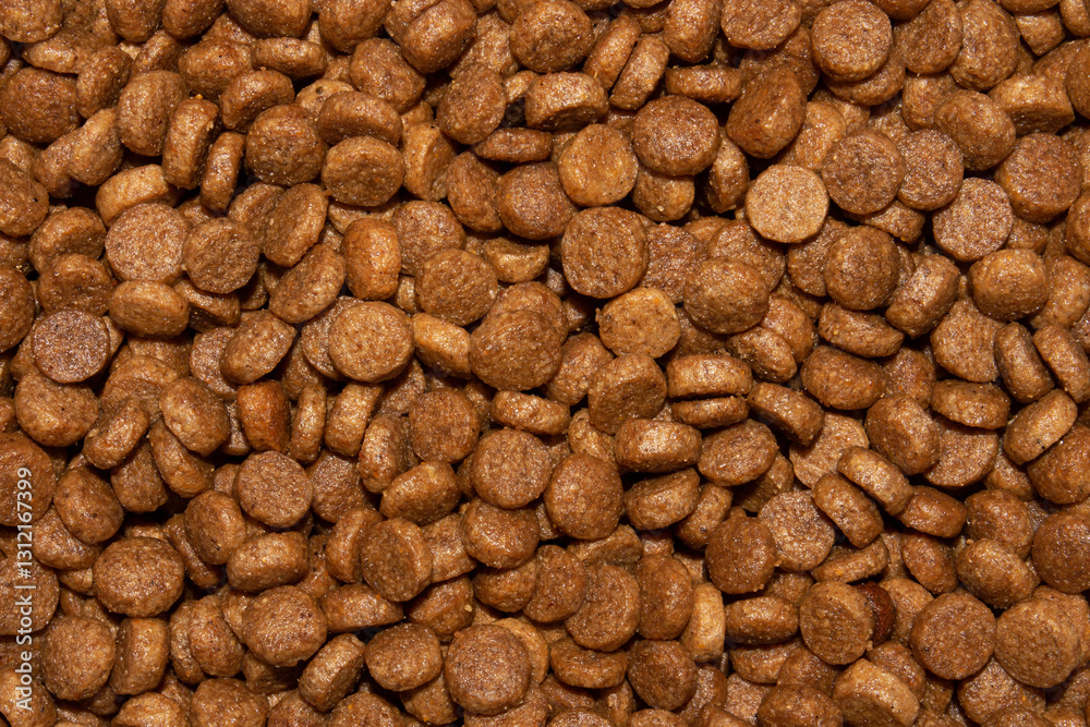 Dry crispy cat food with meat and vitamins.The texture of dry cat food.Cat food background.