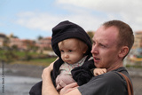 Outdoors portrait of father and daughter. Man and baby girl outdoors
