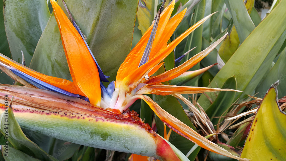 Closeup of Strelitzia Reginae flower (bird of paradise flower)