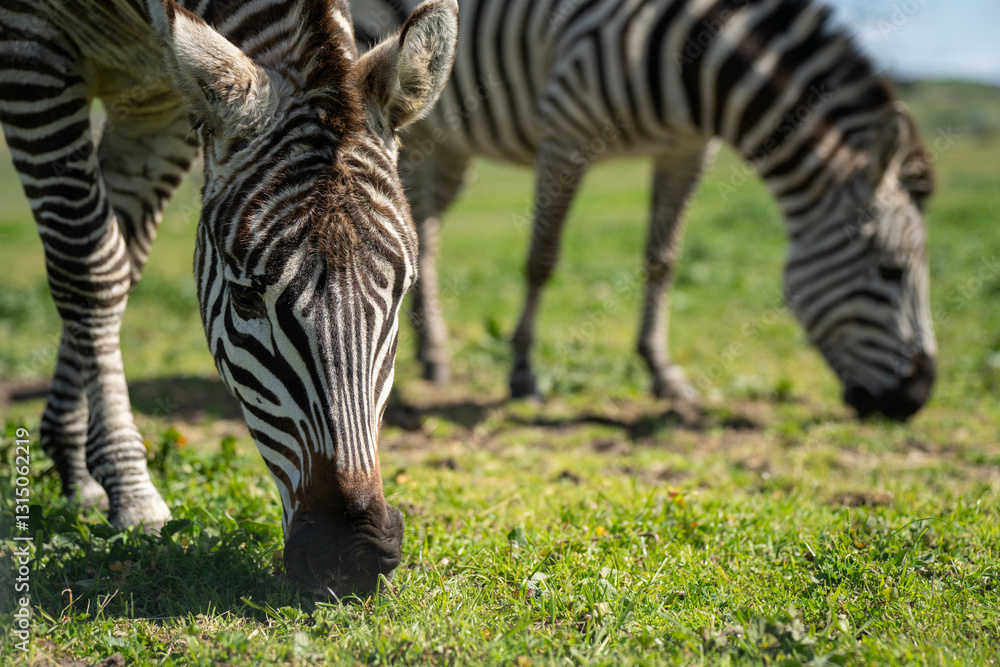 zebra eating grass in a herd