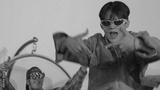 Close up of asian street dancer moving to pop music with neon light while diverse friend sitting and support performance. Professional performer practicing dancing step to beat at studio. Regalement.
