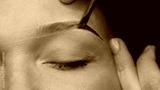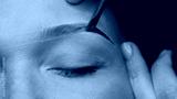 Woman is on the Eyebrow coloring procedure. Professional lamination procedures of female eyebrows in beauty salon. Closeup view of client face and stylist's hands working. Beauty care concept.