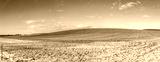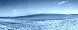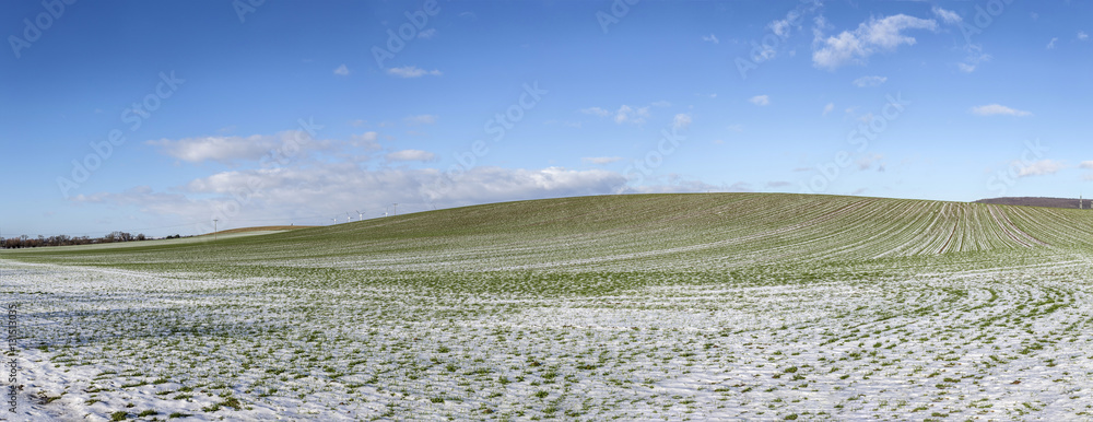 winter landscape with fields, snow and blue sky
