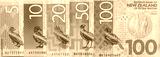 Fragments of New Zealand banknotes. Money New Zealand dollars, Panorama, financial banner