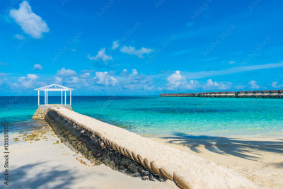 Beautiful tropical Maldives island with white sandy beach and se
