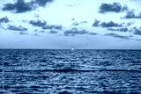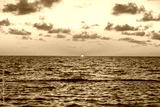 Beautiful sunset with sky over calm sea in tropical Maldives is