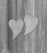 Two wooden hearts on a wooden background. Top view. Valentines days. Love symbol. Greeting card.Vintage style. Greeting card.