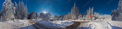 Słoneczny zimowy dzień w Krynicy-Zdrój. Sunny winter day in polish mountain in Krynica-Zdroj.