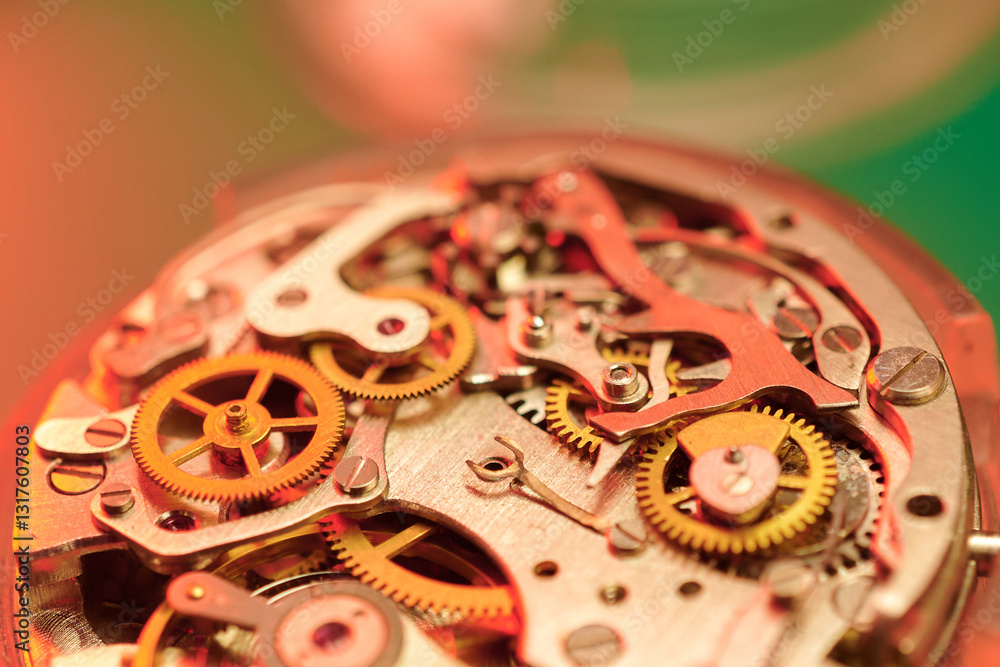 Intricate details of a wristwatch mechanism showcase exceptional craftsmanship in macro photography