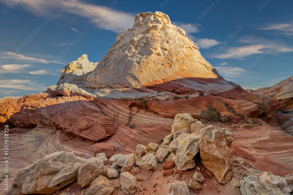 Stunning Rock Formations Under a Bright Blue Sky at Sunset in the Desert Landscape of White Pocket Arizona