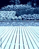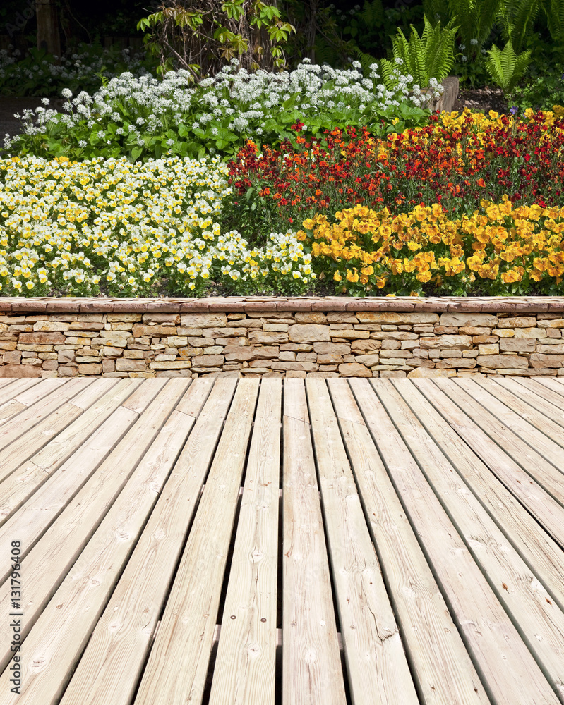 Gartenterrasse mit Blumenbeet