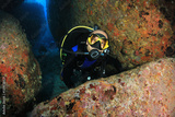 Scuba diver exploring underwater cave