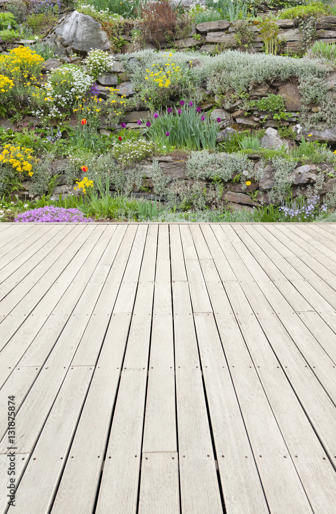 Terrasse mit Gebirgspflanzen