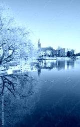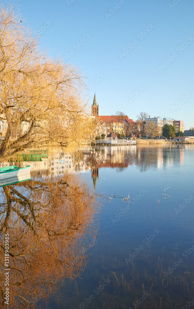 View of the town of Barlinek on the lake, West Pomeranian Voivodeship, Poland.