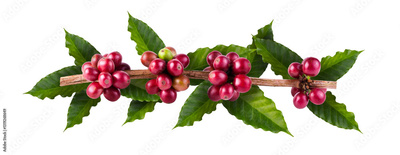 Fresh Arabica Coffee beans ripening isolated on transparent background