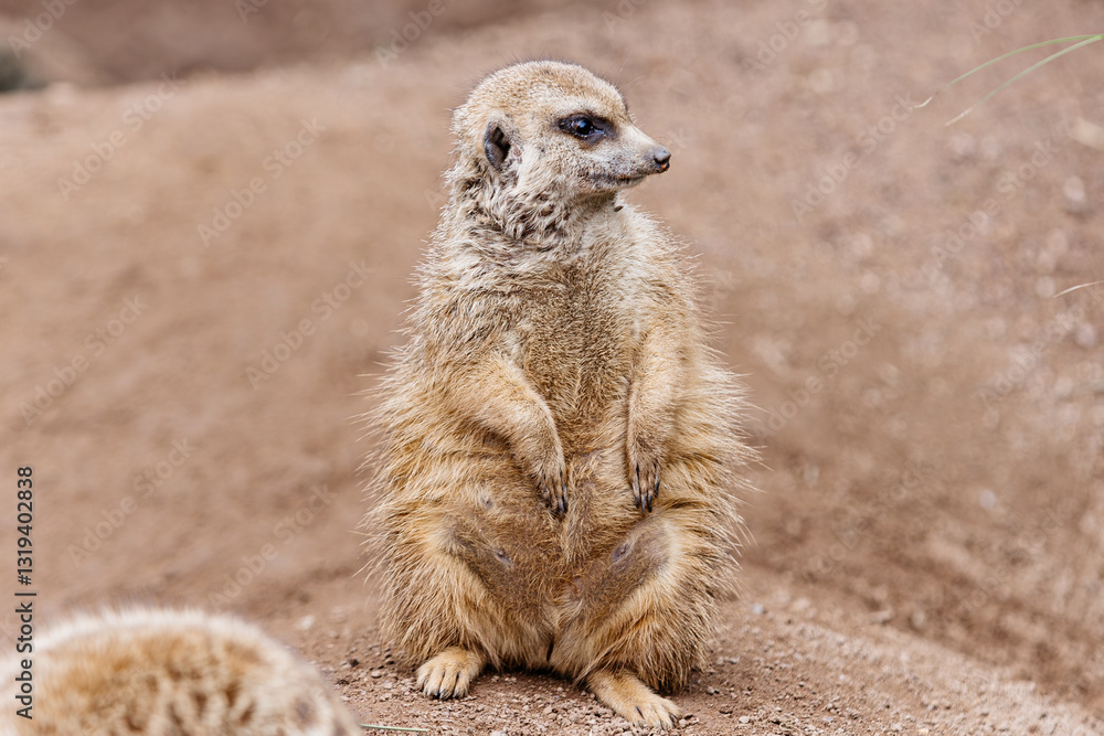 A close-up of a meerkat exploring the outdoors. The concept of animal protection.