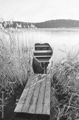 A small fishing boat on the shore of a lake, Barlinek, Poland.