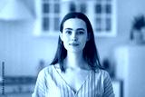 Independent and confident millennial. Head shot portrait profile picture at social media of young casual beautiful woman student freelance worker posing at home looking at camera talking by video call