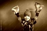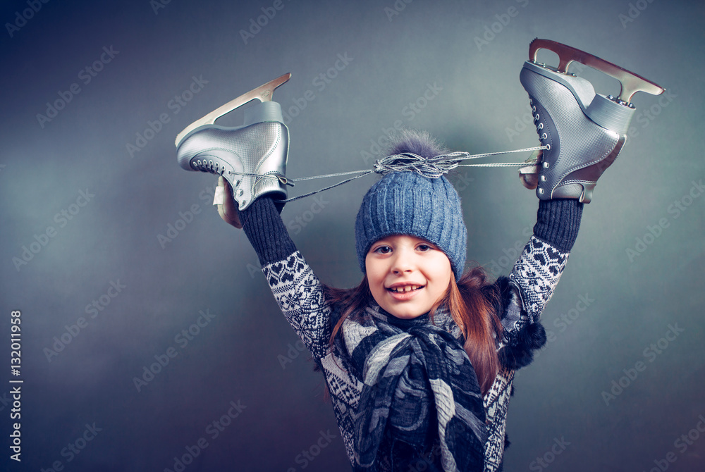 Little girl with skates isolated on background
