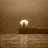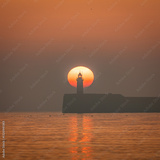 March sunset behind Newhaven lighthouse from Seaford beach east Sussex