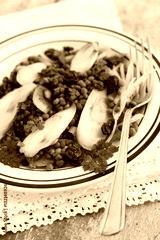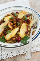 Warm Winter Salad with Lentils and Parsnips with Dried Cranberries and Chervil