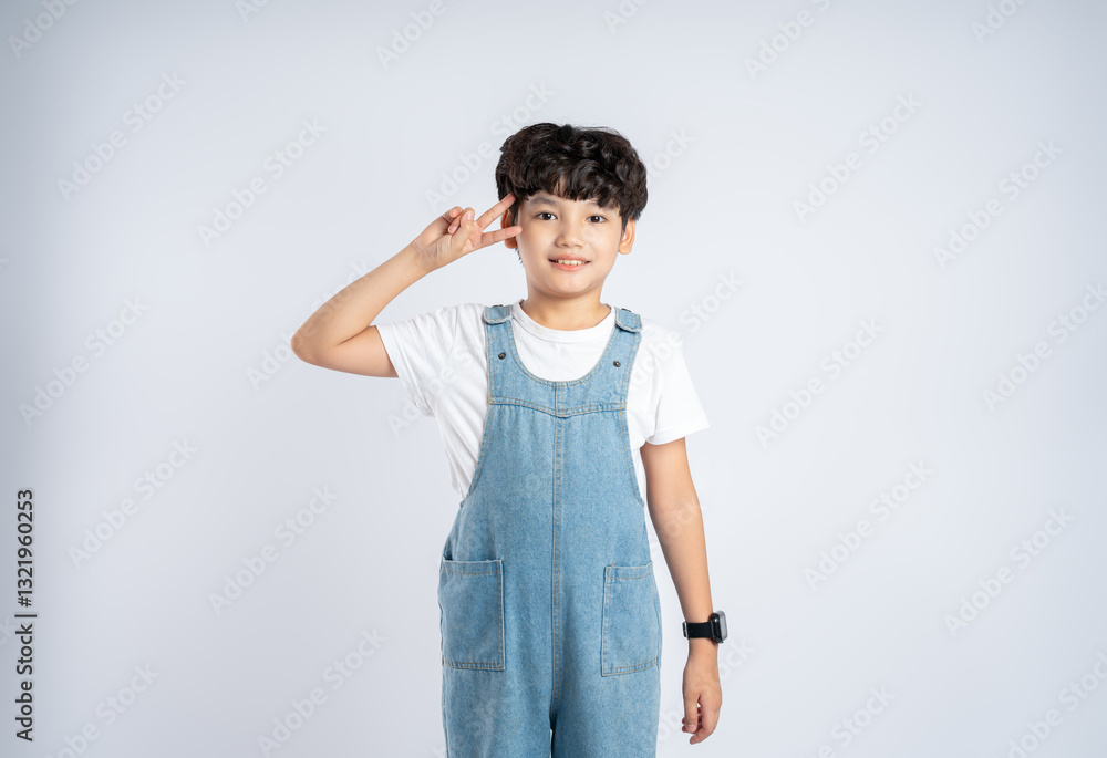 Portrait of beautiful Asian boy posing on white background, child