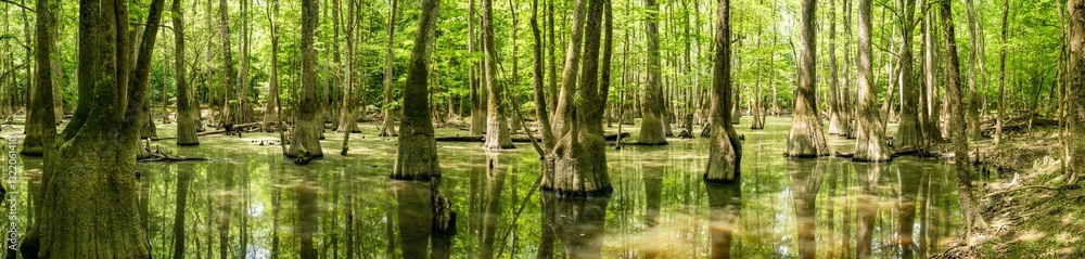 Panorama Of Cypress Stand Tall In The Still Water Of Congaree