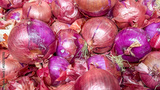 Fresh red onions piled together, perfect for harvest season, cooking ingredients, and vibrant market produce