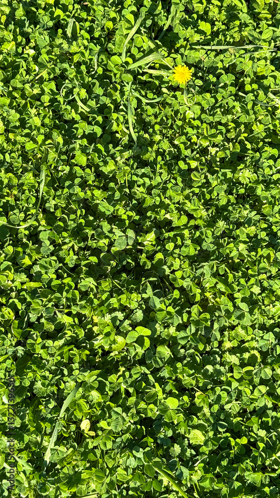 Lush green grass with a single yellow flower, symbolizing spring renewal and Earth Day