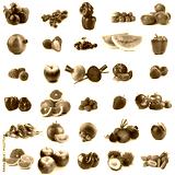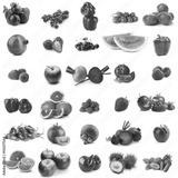 Assortment of fresh vegetables and fruits on white background