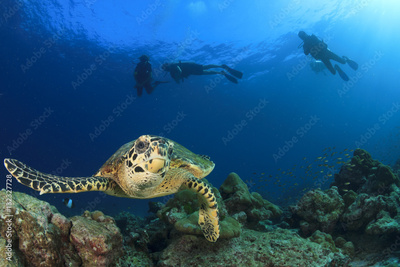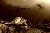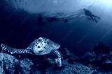 Sea Turtle and scuba divers