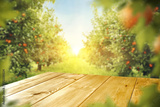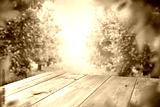 wooden table and orange trees