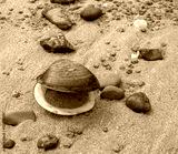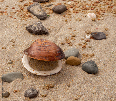 Large open shell on beach at Castletown, Thurso, Scotland, UK