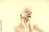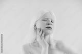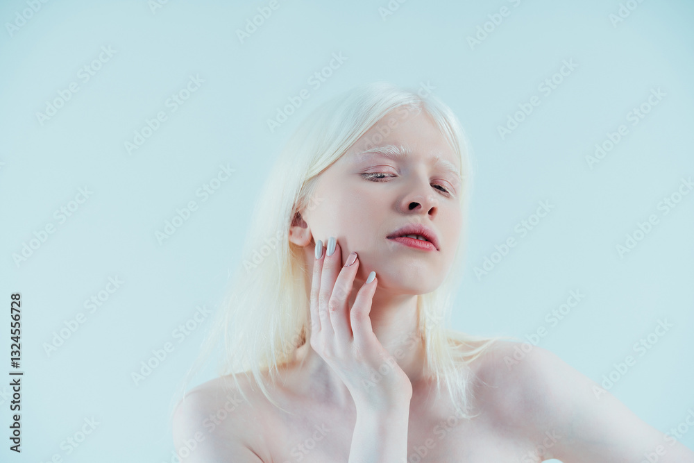 Beauty image of an albino girl posing in studio wearing lingerie. Concept about body positivity, diversity, and fashion