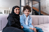 Emirati family doing activities with kid at home in Dubai.