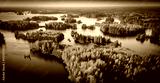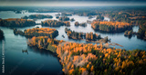 Spectacular drone view of the Swedish archipelago landscape, and islands, autumn, Stockholm, Sweden